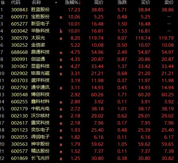 铜缆高速连接板块直线拉升,新亚电子、华脉科技涨停,胜蓝股份涨超10%,瑞可达、鑫科材料、金信诺、兆龙互连、神宇股份等跟涨。